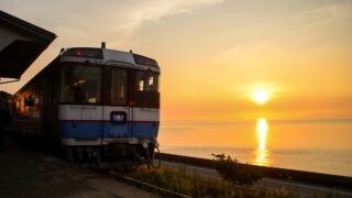 列車を降りると広がる絶景、日本一有名な「海の見える駅」下灘。駅から見える美しい夕陽に思わずうっとり…。