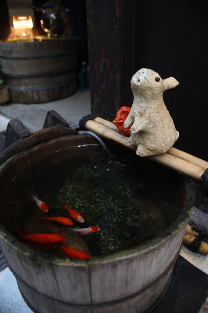 まるでタイムスリップしたかのような雰囲気の中で泳ぐ色彩豊かな魚たち。京都にはこんな日本らしい美しい場所がたくさんある。